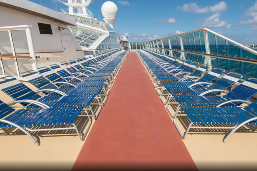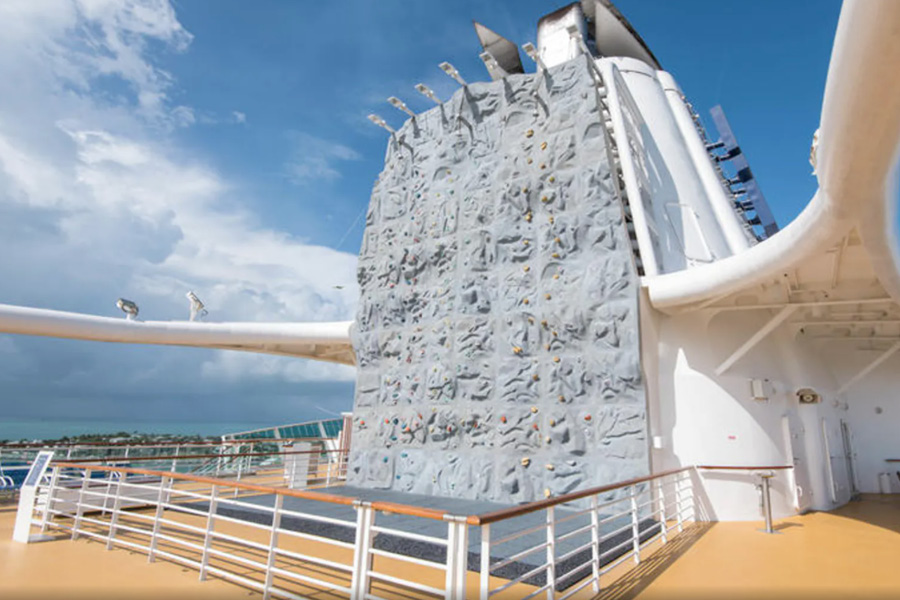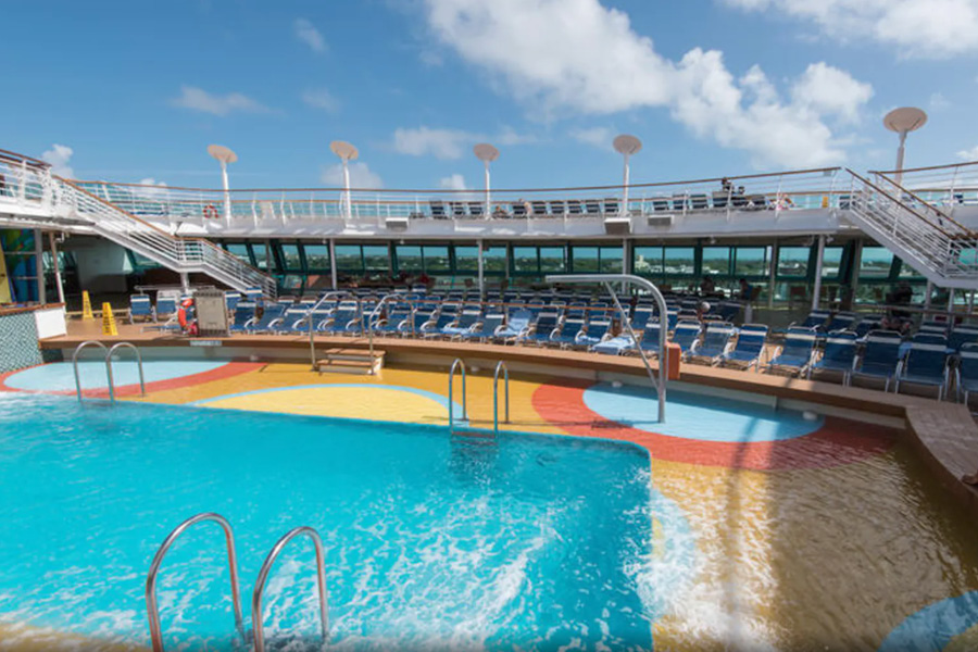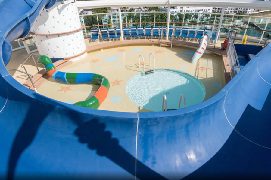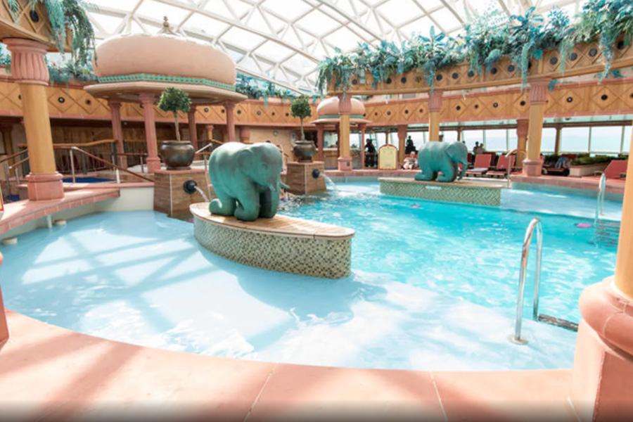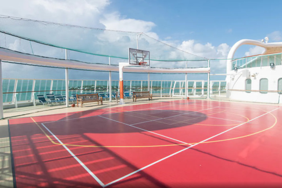 Беговая дорожка на 12 палубе. Спортплощадка для активных командных игр на палубе 12 рядом с детским клубом и аркадой видеоигр. Поле для мини-гольфа на 13 палубе. Три бассейна: два бассейна на палубе 11 и детский бассейн с элементами аквапарка на палубе 12. Один из бассейнов на палубе 11 окружен зоной только для взрослых Solarium в африканском стиле с двумя джакузи и убирающейся стеклянной крышей. Скульптуры слонов обрамляют небольшой водопад. Rock Climbing Well – стена для скалолазания на 13 палубе. Bombay Billiard Club – американский бильярд на автоматически выравнивающихся столах в зоне The Colony club на палубе 6.