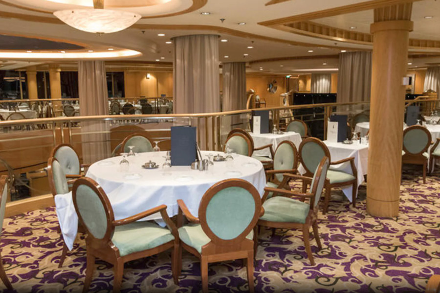Ministrel Dining Room – основной двухуровневый ресторан на палубах 4 и 5 предлагает кухню и сервис международного класса, с ежедневным обновлением меню завтрака, обеда и ужина. На завтрак основной ресторан предлагает блины и блюда из яиц, свежие фрукты, йогурты и свежую выпечку – обслуживание за столами и по системе «шведский стол». На обед по такой же системе предлагаются супы и сэндвичи, горячее второе и обширный салат-бар.