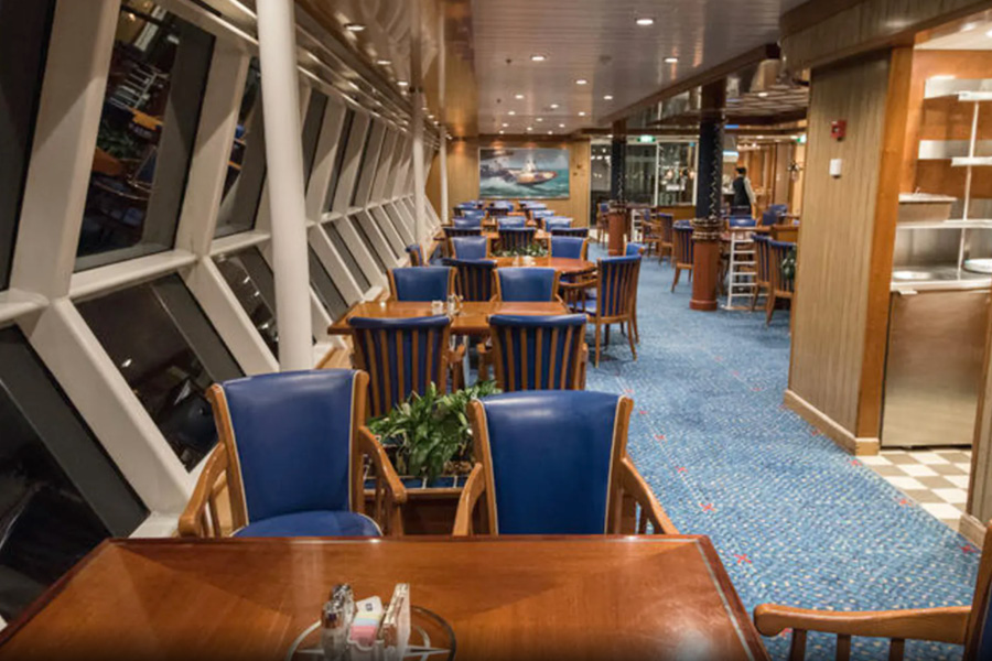 Windjammer Cafe – площадка с многочисленными станциями шведского стола, где можно найти континентальный завтрак, начиная с 6 часов утра и горячие завтрак немного позже. Станции предлагают мясо, сыр и фрукты в разных видах, салат-бар. Есть горячие станции со свежими блинами и макаронами, станции с американскими блюдами: картошка фри, гамбургеры и пицца, и азиатскими блюдами на воке.
